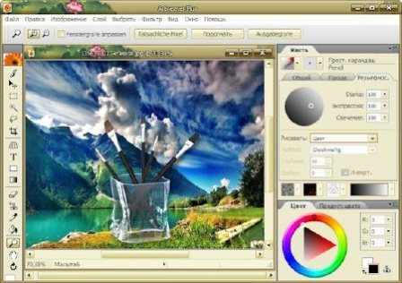 [c]  [/c] [b]Artweaver Plus[/b] - удобный графический редактор, работающий с графическими файлами в форматах BMP, GIF, JPEG, JPG, JPE, PCX, PNG, TGA, VDA, ICB, VST, TIF, TIFF и AWD. Среди его возможностей можно выделить работу со слоями, импорт и экспорт графики в различные форматы. Особенностью данного графического пакета является большой выбор инструментальных кистей (мел, древесный уголь, карандаш, акриловые волокна, губка, масло). [b]Artweaver[/b] по внешнему виду напоминает Photoshop - те же панели истории и слоев, палитра инструментов, область предварительного просмотра. Однако, в отличие от графического редактора от Adobe, эта программа содержит только инструменты для рисования. Используя их, мо
